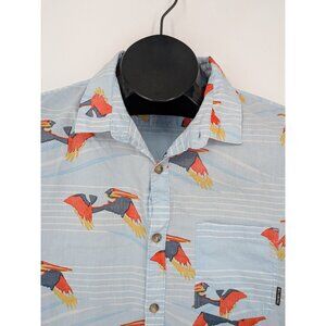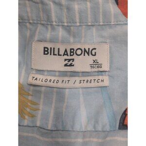 Billabong Hawaiian Button Up Size XL Tailored Fit Stretch Parrot Print Tropical