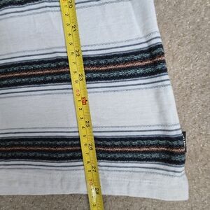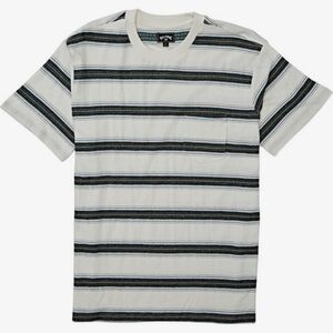 The Billabong Hazer T-Shirt for Men is a stylish and comfortable option for the warmer seasons. Made of cotton, this short sleeve shirt features a striped pattern in green and white. It has a classic crew neckline and is machine washable for easy care. The shirt is accented with the Billabong logo and is part of the regular fit collection. A versatile piece that can be worn in the summer, fall, and spring, this T-shirt is perfect for everyday wear.
