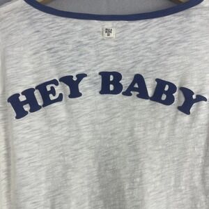 Billabong Hey Baby White Blue Long Sleeve V-Neck T-Shirt Top Women's Small
