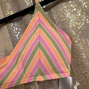 Billabong Hightide Tanlines V Bralette Top-Multi Pink Green Swim M NWT