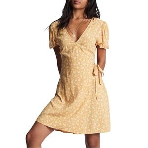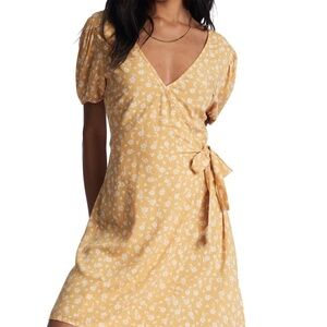 Billabong Hot Tropics Floral Mini Wrap Dress in Goldie Sz. XS