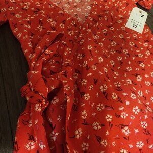 Billabong Hot Tropics Mini Wrap Dress NWT Red Floral XS