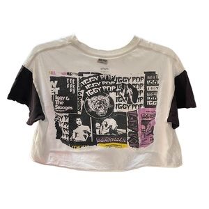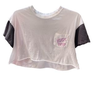 Billabong Iggy Pop cropped distressed raw edge tee size medium