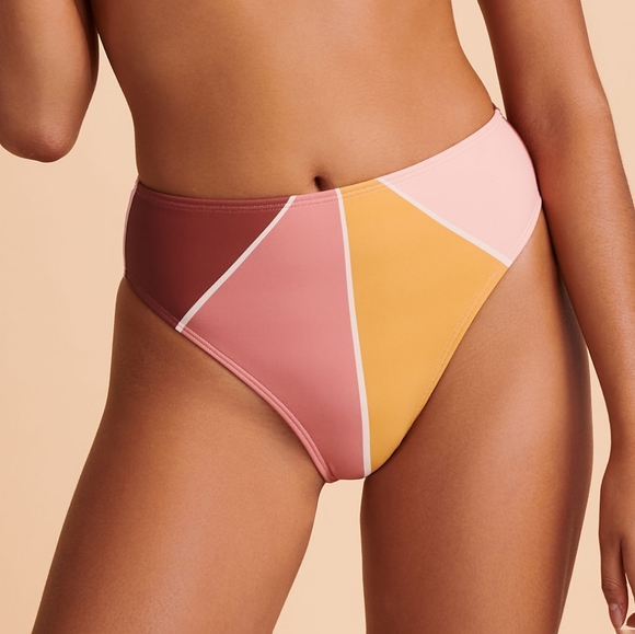 Set your sundial to high noon with this fully-baked strapless bikini bottom. Saturated with sunburnt, retro tones.