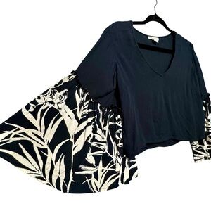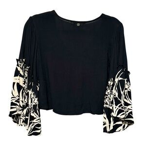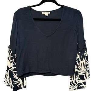 Billabong Island Folk Pieced Crinkle Wide Flare Sleeve Lightweight Top
