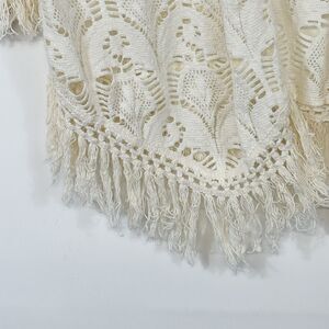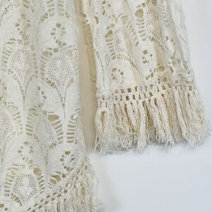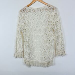 Billabong Ivory Knit Lace Fringe Boho Open Front Cardigan Sweater Women's Medium