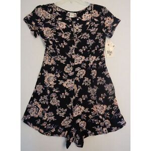 Billabong J201EFES Women's Sz S Black Floral Short Sleeve Button Front Romper