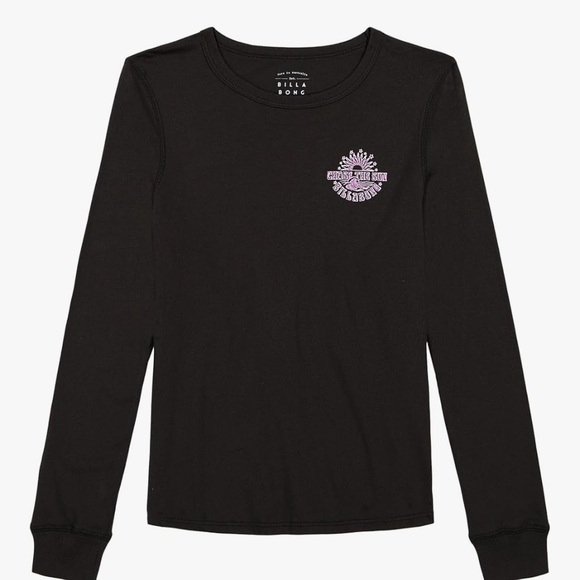 Comfortable black tee with a stylish purple graphic. Perfect for everyday wear. Billabong Girls Long Sleeve Boyfriend Fit T-Shirt Long sleeve boy tee