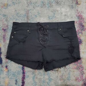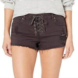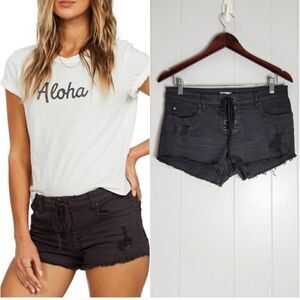 Billabong Lace up Denim Shorts in Charcoal Black Size 27