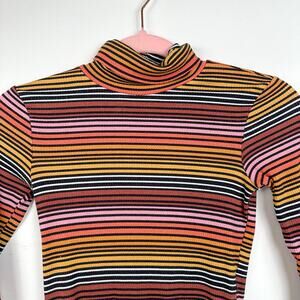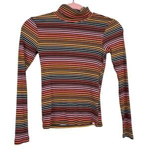 Billabong Let it Stand Striped Rainbow Turtleneck Long Sleeve Top Retro Color