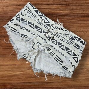 Cute Billabong lowrise shorts with a tribal sort of design. Super short with lace up front. Have stretch