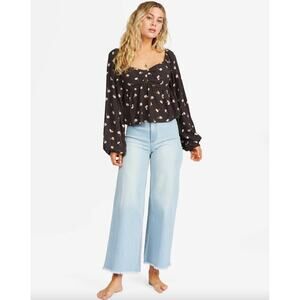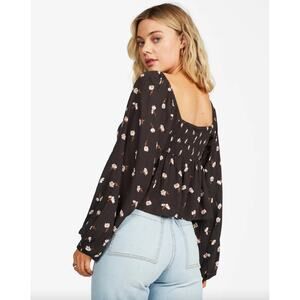 Billabong Love You More Floral Print Sweetheart Crop Blouse Size L Beach Boho