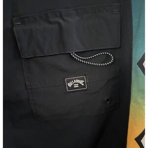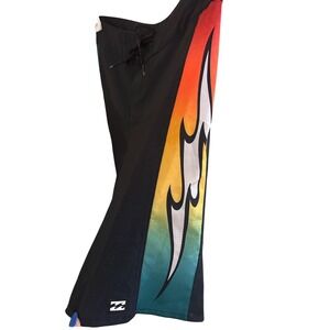 Ignite your surf style with these Billabong board shorts, a fusion of performance and eye-catching design. These shorts feature a sleek black base, accented by vibrant flame graphics along the sides, creating a bold and dynamic look. The recycled fabric ensures lightweight comfort and flexibility, allowing for unrestricted movement in the water. Equipped with a secure drawstring closure and a convenient back pocket, these board shorts offer both practicality and style. Perfect for catching waves, lounging on the beach, or enjoying a casual day by the pool.