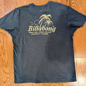 Billabong Men’s L Tee Dark Indigo — “Feeling Free Since Seventy Three” Palm & Su