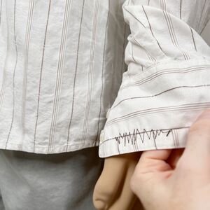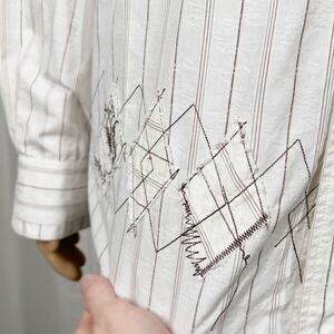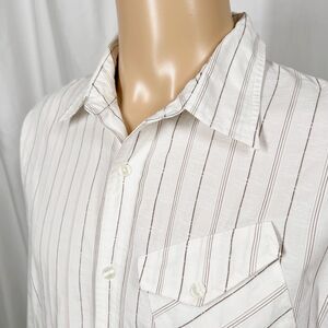 Billabong Mens Large White Brown Striped Embroidered Long Sleeve Button-Up Shirt
