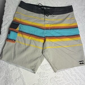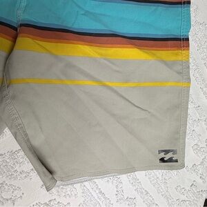 Dive into style with these Billabong swim shorts featuring vibrant multicolor stripes. Perfect for a day at the beach or pool.