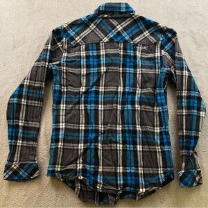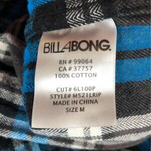 Billabong Mens Shirt Medium Long Sleeve Plaid Flannel Button Up Black Classic