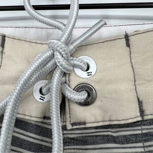 Billabong Striped Tropical Colorblocked Drawstring Tie Pocket Pull On Swim Trunks