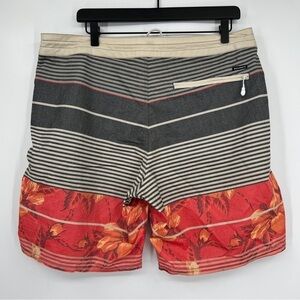Billabong Men's Striped Tropical Floral Drawstring Tie Pocketed Swim Trunks