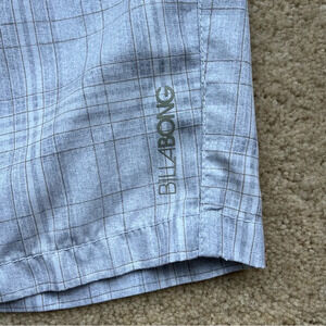 Billabong Men’s White & Gray Plaid Flat Front Shorts - Size 30 - EUC - Polyester