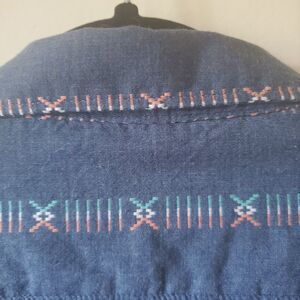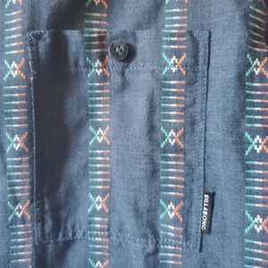 Great condition. This soft Billabong men's shirt is perfect for any casual occasion. With a blue tribal pattern, short sleeves, and a collared neckline with button-down closure, it is both stylish and comfortable. The shirt is made of a cotton blend fabric that is lightweight and easy to wash in the machine.