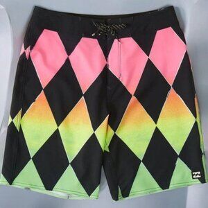 Billabong Neon Gradient Diamond Print Board Shorts NEW Boys 26 12/14