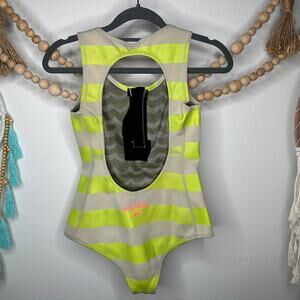 Billabong Neon Tan Stripe Zip One Piece Swimsuit