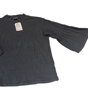 Billabong Off Black Ruffled Flutter Mock Neck Sleeves Top Size L NWT