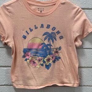 Billabong Orange Graphic Tropical Sunset Cropped Baby Tee size M. Approx. measurements 14” chest flat across, 16” length.