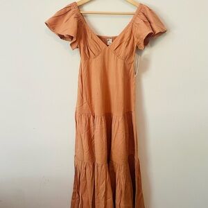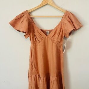 Billabong Orange Maxi Sundress with Flutter Sleeves