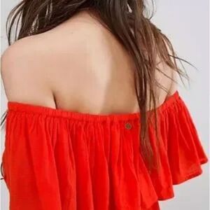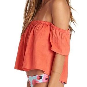 Billabong Orange Off Shoulder Top Blouse Shirt Tangerine Orange Size Medium