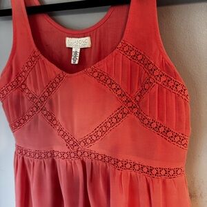 Billabong Peach Y2K Babydoll Mini Dress- Lace Detail Rough Handkerchief Hem Sz S