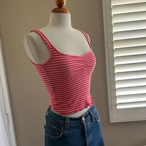 Billabong Pink and White Striped Tank with Smocking
