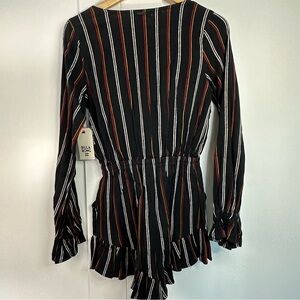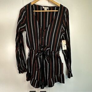 Billabong Play All Day Romper small black jumpsuit shorts long sleeve ruffle