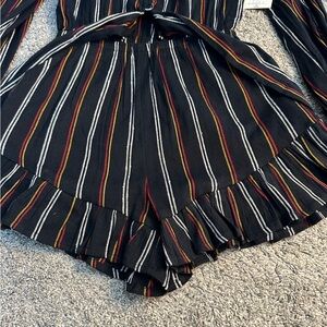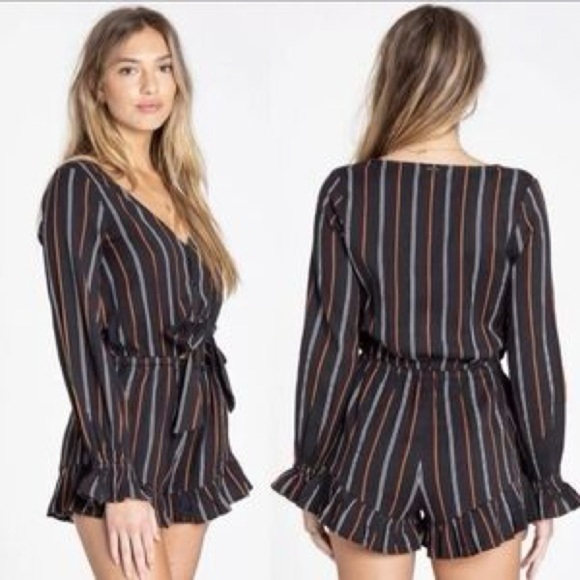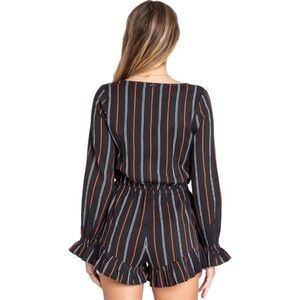 Billabong Play All Day Romper small black jumpsuit shorts long sleeve ruffle