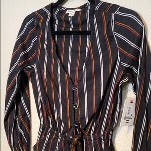 Brand new Billabong Play All Day Striped Long Sleeve Romper Black Size XS. Striped romper. V neckline.