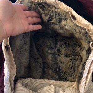 Billabong Puffer Jacket with Removable Hood Size Large. In excellent barely worn condition. Very cozy with a removable faux fur hood.