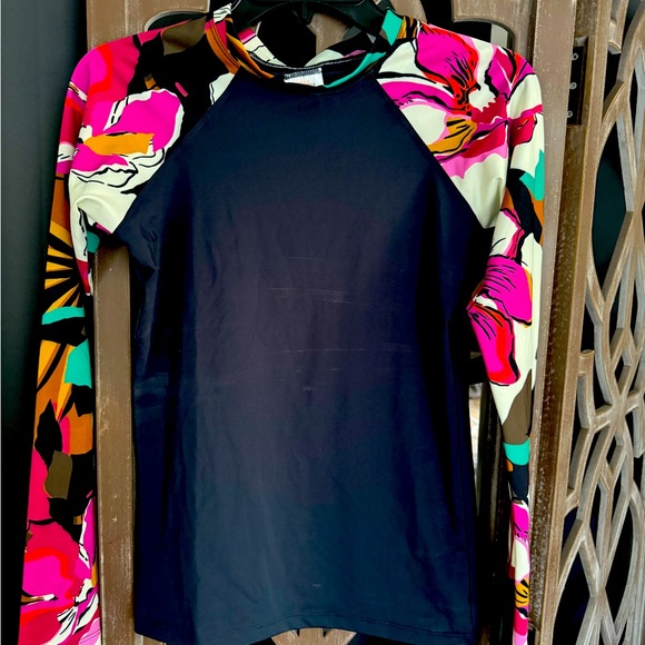 Cute floral and navy rash guard—size L. Good condition, hardly worn.