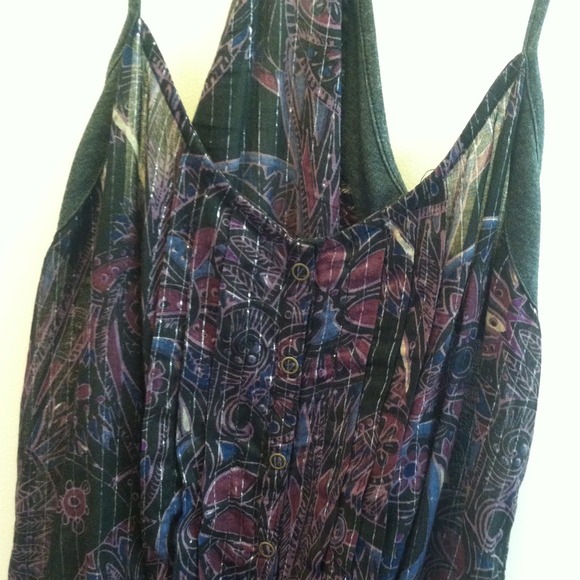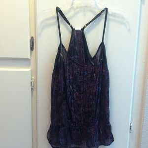 Sexy purples and blues spiral through this shirt and has a hint of silver vertically striped. All over the shirt.