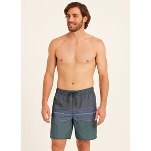 Men’s Billabong boardshorts in a multicolor striped pattern with contrast stitching and a side cargo pocket. Lightweight, quick-dry fabric with built-in mesh lining and drawstring waistband for secure comfort. Part of the eco-conscious Recycler line made from recycled materials.