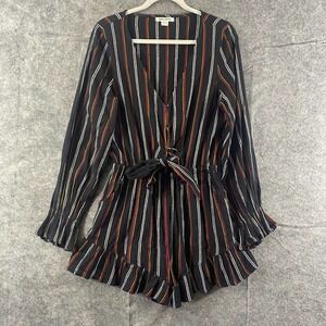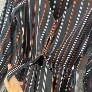 Billabong Romper Large Black Striped Play All Day V-Neck Long Sleeve