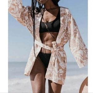 Billabong Sandcastle Linen Coastal Beachy Nautical Belted Bohemian Kimono