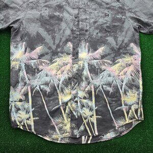 Billabong Shirt Mens XL Gray Button Up Short Sleeve Summer Tropical Palm Trees