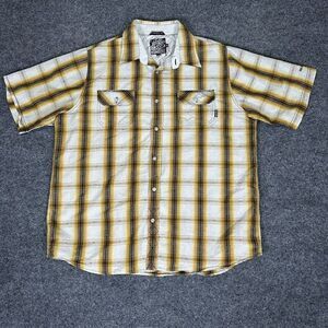 Billabong Shirt Mens XL Yellow Plaid Short Sleeve Straight Fit Pockets Adult
