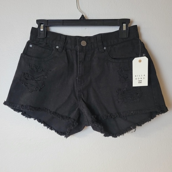 Billabong Shorts Black Sz 26 Drift Away Denim Raw Hem Distressed 2” Inseam