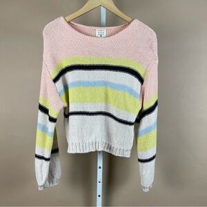 Billabong Size Large Seeing Stripes Sweater Pastel Colorblock Beachy Boho Hippie
