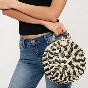 Billabong Soak It Up Straw Circular Crossbody Bag Boho Festival Handles Strap