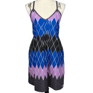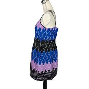 Billabong Spaghetti Strap Geometric Print Dress Black Blue Purple Large