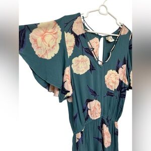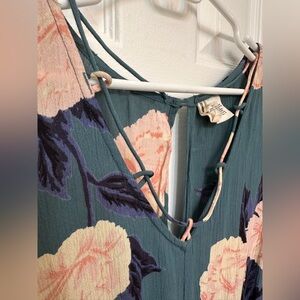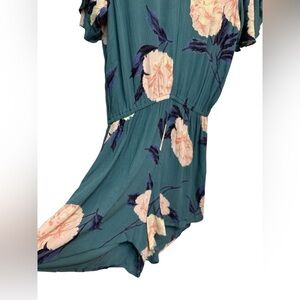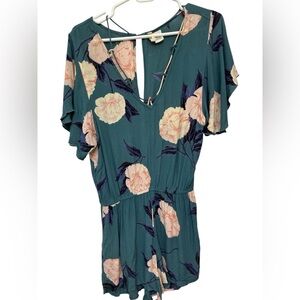 Billabong Strap Up Green Floral Short Romper. Size medium.