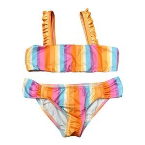 Billabong Striped Colorful Two Piece Bikini Swimsuit Girls 14
